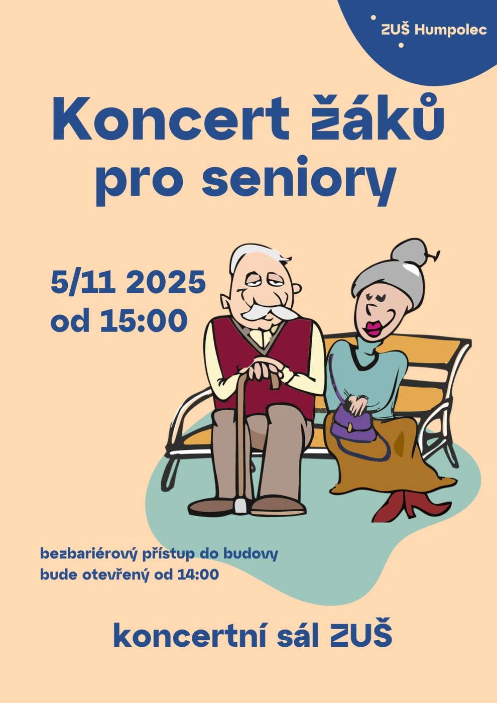 Koncert žáků pro seniory5. 11. od 15:00 v koncertním sále školy. Bezbariérový přístup bude otevřen od 14:00.