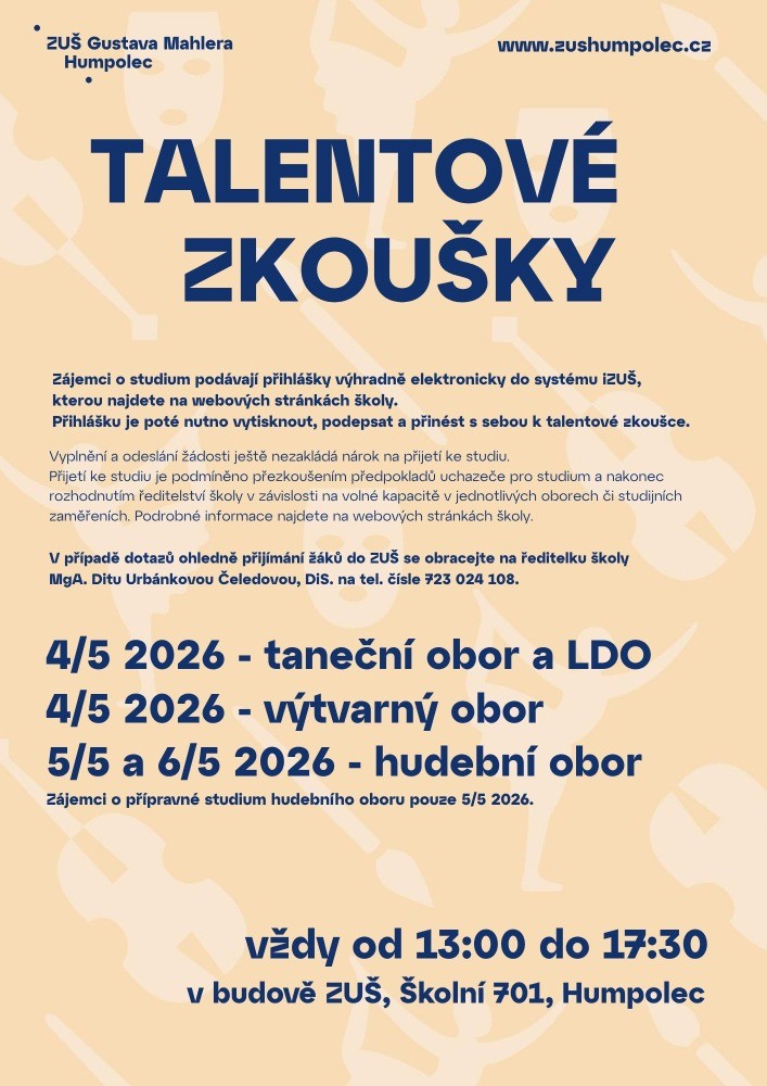 Podejte si přihlášku a přijďte k talentovým zkouškám 4. - 6. května